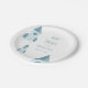 Paper plates for a baby shower with a series of blue rocket spaceships. This item shows blue space rockets with relaxed and airy text. All of the words can be customised.