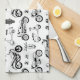 Illustration motorcycles scooters and helmets tea towel