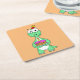 Illustration Of A Brontosaurus With Birthday Cake. Square Paper Coaster