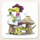 Illustration Of A Cartoon Raptor Poet Thinking. Square Paper Coaster