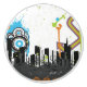 Illustration of a grungy cityscape ceramic knob