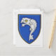 Illustration of heraldic fish symbol on shield postcard
