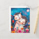 Illustration of two Hugging Hedgehogs in night at Postcard