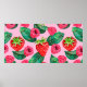 Illustration of watercolor hand drawn pattern with strawberries and raspberries. Summer fruit background. Organic food. Exotic, tropical. Vegetarian.