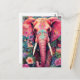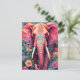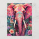 Illustration pink elephant with flowers postcard