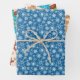 This set of 3 wrapping paper sheets features beautiful brown, blue, and red Christmas motifs 🎅❄️, including patterns of Santa, snowflakes, and gingerbread men 🍪.