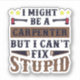 This I'm A Carpenter But I can't Fix Stupid Sticker is a great way to add a little humour to your daily routine.