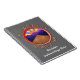 This geology student's notebook features a sketch of an alluvial fan as a round, colourful logo, with the funny text "I'm a Huge Fan of Alluvium" encircling the image. This design includes a low sun rising over a mountain range with a large alluvial fan. Most noticeable in the desert, an alluvial fan is a large fan-shaped pile of alluvium (sediment) that is washed out of mountains by water. Perfect for sedimentology class!