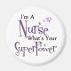 This is a fun magnet that tells all you are a proud Nurse. The colorful magnet is quite strong and can by displayed on any metallic surface.