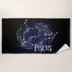 Unique, one-of-a-kind, elegant, customisable Beach Towel for a summer holiday, a birthday or other occasion, Showcase your wonderful Pisces personality with this zodiac designed explicitly for people of the Pisces zodiac sign, In mythology, the constellation represents Venus and Cupid, who transformed themselves into fish in order to escape the monster Typhon. Pisces is the Zodiac constellation. The Sun transits the area between February 18 and March 20.