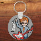 Rockstar keyring dark-hair boy on orange. Add your name keychain this example reads Isaac or add your own name (3-5 letters max). Exclusive design by Sarah Trett.