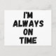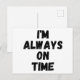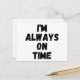 I'm Always On Time Funny White Lie Party Holiday Postcard