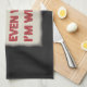Black kitchen towel featuring design with the text "I'm Always Right. Even When I'm Wrong" in blue and red.