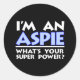 I'm an Aspie. What's Your Super Power? Classic Round Sticker