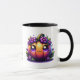 An adorable kawaii chibi orange pumpkin with purple flowers on it and a cute kawaii bat personalised Halloween Coffee Mug.