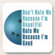 Bowling Ball Art Don’t Hate Me Because I’m Good t-shirts, gifts, and accessories created by ITD Sports Centre feature our original artwork of half a blue bowling ball on the left side with the words in Blue and dark blue on the right, Don’t Hate Me Because I’m Beautiful, Hate Me Because I’m Good. Our fun and competitive sporting goods are great gifts for bowling ball lovers, bowling ball lovers, bowling ball players, bowling ball stars, bowling ball coaches, athletes, and sports lovers of all ages. It’s all fun and games at Imagine That! Design Sports Centre!