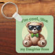 I'm Cool Teddy Bear with Green Bow Customisable Key Ring