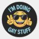 I'm Doing Gay Stuff Meme Funny LGBTQ Pride Classic Round Sticker