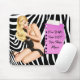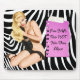 I'm FAR Too HOT For This Place. Fun Retro Mousepad. Blonde With Black Gloves On Retro Zebra Print. Pink torn grunge note paper with tape. You can easily customise the text to that of your own. A beautiful scantily clad blonde with black gloves on animal skin. From my vintage pin up girls series, adapted from vintage pinup poster art. Vintage pinup model Pin-Up girl