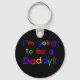 Buttons, stickers, and keychains for the future dad with kid style primary colours text that reads 'I'm going to be a Daddy!!".