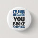 I'm Here Because You Broke Something 3 Cm Round Badge