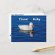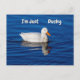 A cute little white duck is swimming around in bright blue water. A great way to check in with friends and family.