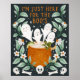 Cute and fun poster with ghosts rising out of a Moscow Mule cocktail with the words 'I'm just here for the booze'