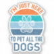 Funny Saying "I'M JUST HERE TO PET ALL THE DOGS". Dog Lover Funny Vintage design and retro colours makes a great present for dogs owners. Gifts for mothers day, fathers day. Dogs Lovers quotes, Give this cute design as a present this Mother's Day. Do you absolutely love dogs, are a dog owner? Our awesome funny design are perfect for any occasion. For any Pet or Dog lover or for any party. A great birthday present for Dad Mum son or friend who love Dogs!