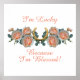 Bring some Luck & Blessings with pink peach roses and a golden horseshoe for home decor wall art poster. "I'm Lucky Because I'm Blessed" spiritual quote.