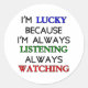 I am lucky, because I'm always listening, always watching. Original positive thinking message.
