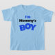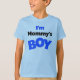I'm Mummy's Boy T-shirts, long sleeve tees, bodysuits including organic bodysuits and football bodysuits, hats, rompers, dark T-shirts, raglan T-shirts, and other apparel with a bright blue and black text design that reads I'm Mummy's Boy!