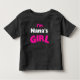 I'm Nana's Girl T-shirts, bodysuits, fleece sweatshirts, pullover hoodies, sleeveless dresses, hats, ruffle shirts and dresses, dark T-shirts, rompers, and other apparel for kids, babies, and toddlers featuring bright pink and black text that reads I'm Nana's Girl!