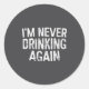 I'm Never Drinking Again Shirt Funny Men Women Dri Classic Round Sticker