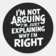 I'm Not Arguing I'm Just Explaining Why I'm Right Classic Round Sticker