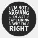 I'm Not Arguing I'm Just Explaining Why I'm Right Classic Round Sticker