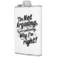 I'm Not Arguing, I'm Just Explaining Why I'm Right Hip Flask