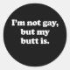 I'm not gay, but my butt is (Pickup Line) Classic Round Sticker