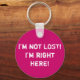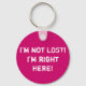 Women's keychain that reads "I'm not lost! I'm right here!" Hot pink background with white text.
