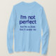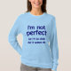 No one's perfect, but some are almost perfect. If you are one of them, then it's time to broadcast it to the world. Reads "I'm not perfect but I'm so close that it scares me." Available in shades of green, white or blue.