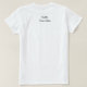 White T-shirt with black letters and a red arrow