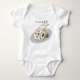 Customized as requested. Quality is fine, but this runs REALLY small. I have to add to the length, and we have many of these onesies to compare. Order much larger than you think. tiny bit of fuzziness in image but it's fine