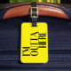 This fun and vibrant text design makes a nice gift for frequent flyers and travelers of all kinds. The bright yellow colour makes it easy to spot your bag in the luggage carousel at the airport. You can change the yellow background to another colour to suit your taste and style. Select the "Customise It" button and choose another background colour. Fill in your name and contact info for the reverse side of the luggage tag by filling in the design template.