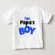 I'm Papa's Boy T-shirts, long sleeve tees, bodysuits including organic bodysuits, and football bodysuits, hats, rompers, dark T-shirts, raglan T-shirts, and other apparel with a bright blue and black text design that reads I'm Papa's Boy!