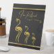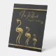 Put a smile on someone's face with this beautiful and funny retirement themed pedestal sign. The design features a chic and classy gold flamingo family of three. The background is an elegant black pattern with gold stripes and the funny saying reads "I'm Retired it's my job to collect flamingos." Available in various size options. The tabletop/desk sign is perfect for a humourous retirement party gift, Grandparent's gift, gift for senior citizens, flamingo lovers, or anyone enjoying retirement! Please browse our complete collection of flamingo-themed retirement cards, gifts, t-shirts, home decor, and more. Special design requests accepted.