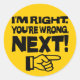 I'm Right You're Wrong Next! Funny Smart Attitude Classic Round Sticker