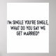 "I'm single, you're single, what do you say we get married?" Funny quote by Jimmy from NewsRadio tv show.