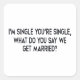 I'm single, you're single. Marriage by negotiation Square Sticker