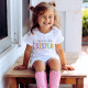 Customise to "Big" or "Little" sister t-shirt with lettering in grey, pink, orange, purple, green, blue, and yellow - many shirt style, size, and colour options available.