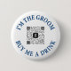 I'm the groom, buy me a drink pin-back buttons are an awesome way to give your groom-self a way to start the party, and keep it going! Bachelor party favour pins are to be customised with your own Venmo, Cash App, or PayPal QR code -- or else I will get all your drink money :)