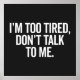 "I'm too tired, don't talk to me," funny rude saying.